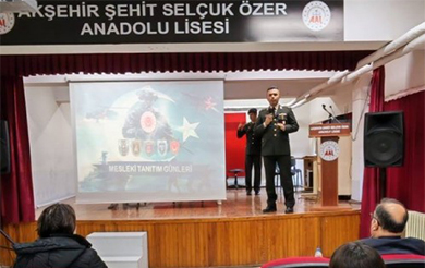 DevamAkşehir İlçe Garnizon Komutanı Albay Dr. Hüseyin Şen, Şehit Selçuk Özer Anadolu Lisesi ile Tarık Buğra Sosyal Bilimler Lisesi öğrencileriyle
