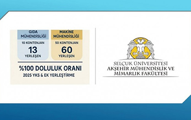 2025 Yükseköğretim Kurumları Sınavı (YKS) ve ek yerleştirme sonuçlarına göre Selçuk Üniversitesi Akşehir Mühendislik ve Mimarlık Fakültesi bünyesindeki Gıda Mühendisliği ve Makine Mühendisliği bölümleri, tüm kontenjanlarını doldurarak yüzde 100 doluluk oranına ulaştı.