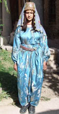 Yörede zengin kadınlar Fes, giyerler. Feslerde altın (benez) bulunur. Benezlerin üst tarafına dolak dolanır. Oyalı yazma, grep, pullu İpek yaşmak fesin üstüne örtülür.Normal günlerde Tülbent ve oyalı yazma örterler. Bol dökümlü,bele sokulan don(şalvar) ve uzun, yakası dört köşe, kolları bol ve ilkli enteri (Don-Enteri)adı verilen kıyafeti giyerler. Don enteri 7m.kumaştan olur 2m.si Enteri 5m.si ise bol ağlı Don içindir. Kadın giysileri; Şali, Kıron, Demor, Güllü Enver Seten, Allı Güllü Basma, Çallı Yünlü, Dağdeviren, Meydaniye, Kutni, Şip, Kadife gibi kumaşlardan yapılır. Kadınlar, ayaklarına beyaz üstüne motif İşlemeli yün çorap ve Kaloş, kundura,basık ve yemeni (zenne) giyerler. Kadınlar bellerine,telkari ve fişekli gümüş kemer, boyunlarına ise beşibirlik adı verilen altın takarlar.